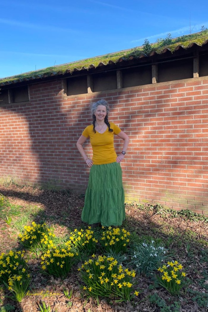 Simpele voorjaars outfit met vrolijke lentekleuren