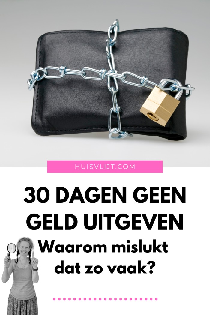 - Als je 30 dagen geen geld mag uitgeven moet je je goed voorbereiden. Zijn er die maand rekeningen die je moet betalen? Zijn er verjaardagen waarvoor je een cadeautje moet hebben? Heb je voldoende voorraad in huis om 30 dagen zonder inkopen te kunnen? Zonder goede voorbereiding mislukt het al gauw.