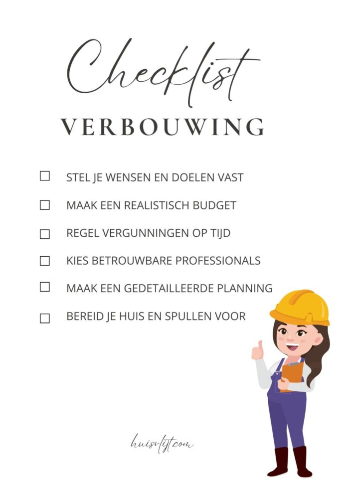 Toen wij van de stad naar het platteland verhuisden, was er een grote verbouwing nodig om het huis van mijn ouders geschikt te maken voor dubbele bewoning. Weliswaar woonde mijn oma ooit in het deel waarin wij gingen wonen, maar ons gezin bestond uit 7 personen. Van de verbouwing herinner ik me vooral dat het ‘een boel gedoe’ was. Van Jelle kreeg ik onderstaand artikel met tips en een checklist om een verbouwing zo soepel mogelijk te laten lopen!