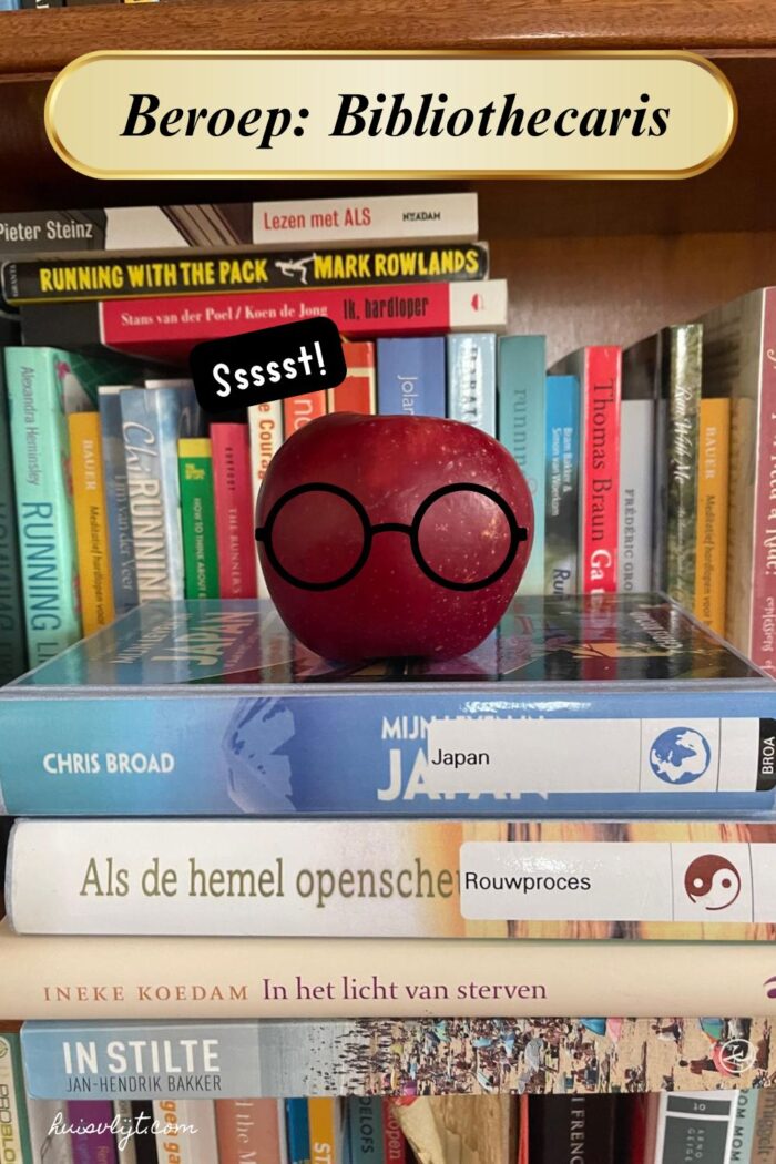 Na enig nadenken besloot ik dat op basis van mijn niet bestaande knutselcapaciteiten, het beroep van bibliothecaris het meest geschikt was voor mijn appel. Ik ben ook nog eens dol op de bibliotheek en boeken, dus ik vond het erg passend. In eerste instantie ging ik in de weer met een stukje ijzerdraad om een brilletje van te maken voor de appel. Ik zat ermee te frunniken, en ik kreeg het al een beetje heet toen ik me realiseerde: