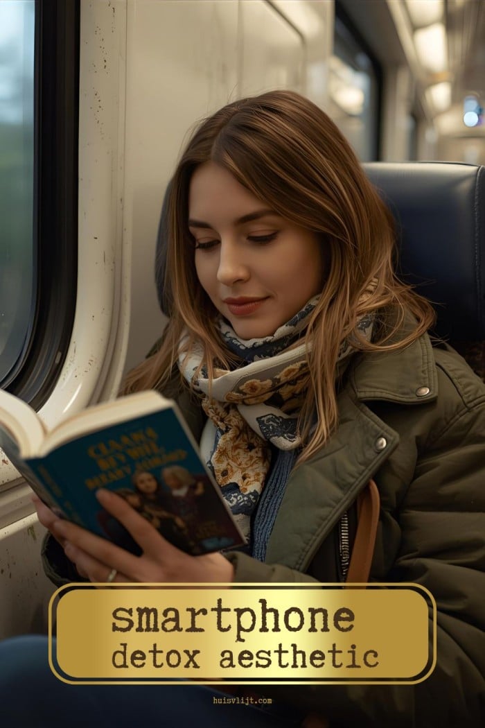 Een prachtig voorbeeld van zogen oemde smartphone detox aesthetic vind ik altijd iemand die in de trein een boek zit te lezen. Hoe vaak zie je dat nou nog?! Meestal zitten mensen toch te scrollen op hun smartphone.