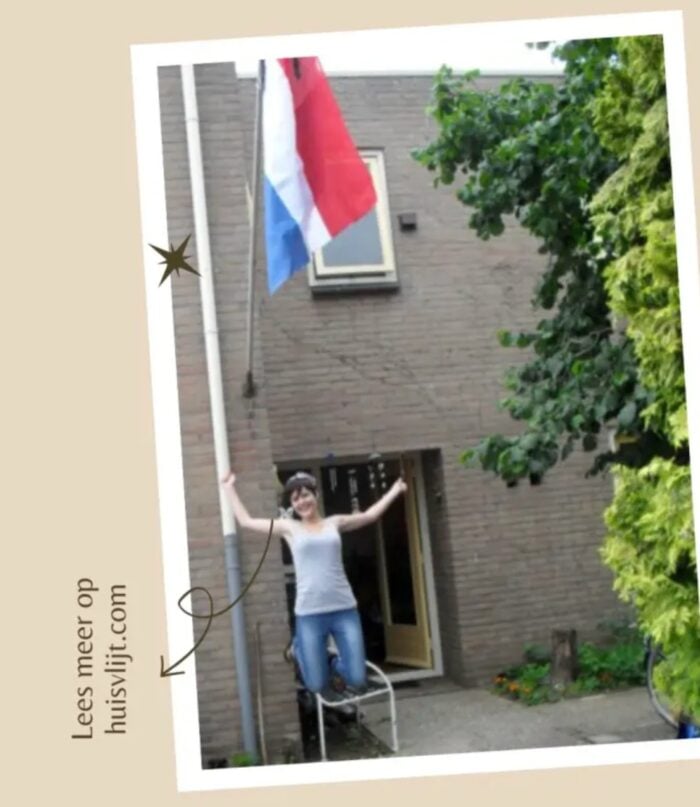 Hang de vlag uit mét schooltas, en maak een foto van de geslaagde die springt. Hieronder zie je de foto die ik destijds maakte van mijn oudste dochter toen ze geslaagd was voor haar eindexamen: