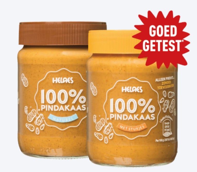 Ook de Consumentenbond is positief over de pindakaas van de Aldi. In mei 2023 noemen ze Helaes pindakaas zelfs ‘reden voor een feestje’. Hij krijgt 5 sterren! Ter vergelijking: Calvé pindakaas krijgt van de Consumentenbond maar 3 sterren.