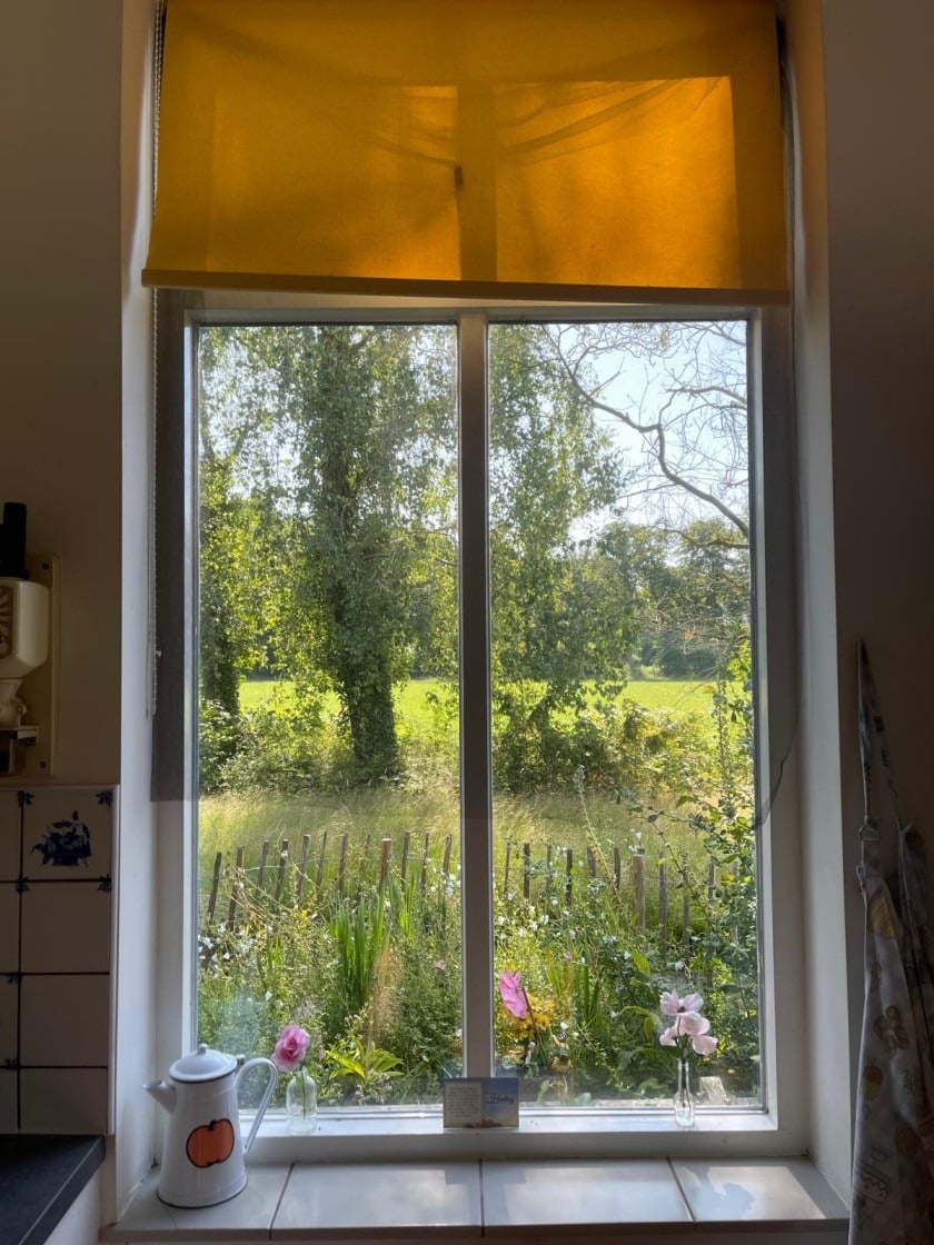 Ben je op zoek naar ideeën voor keukenraam decoratie of keukenraam bekleding? Denk dan aan simpele decoratie op de vensterbank, zoals een vaasje met seizoensbloemen, een paar mooie stenen of een lichtje voor donkere dagen. Ook een luchtig keukenraam gordijn kan veel doen voor de sfeer, zonder het uitzicht weg te nemen. Zoals je in de foto bovenaan deze blogpost ziet hebben wij een geel rolgordijntje.