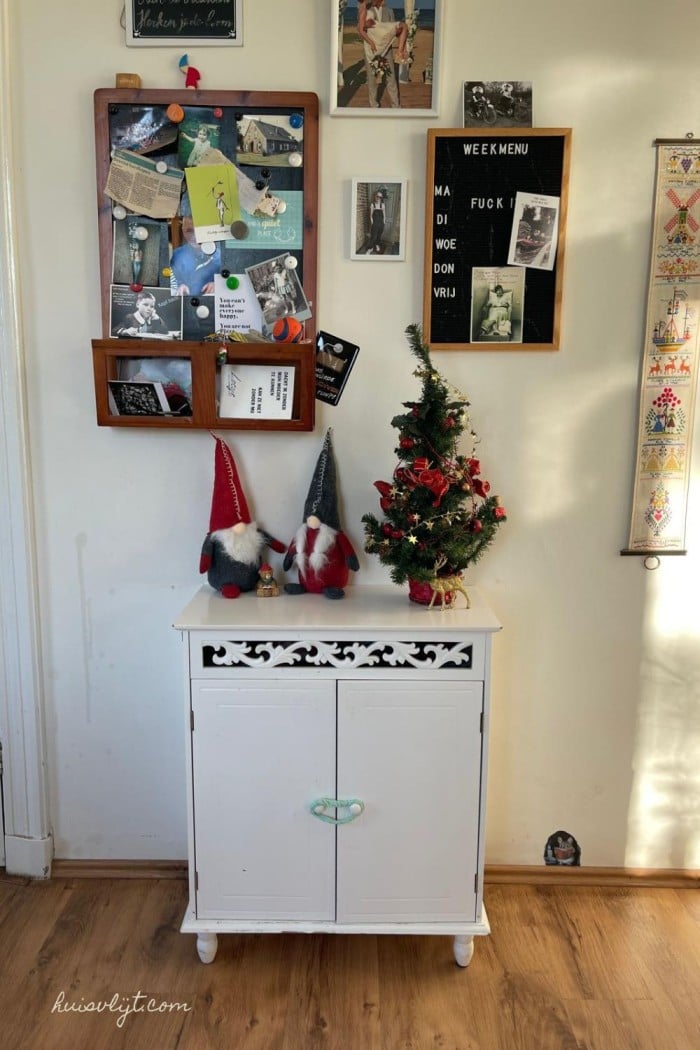 Als het om kerstversiering gaat komt onze keuken er altijd een beetje bekaaid af. Maar nu ik mijn vuilnisbak kastje gebruik als seizoenstafel besloot ik een mooi ‘kerst vignette’ voor de keuken te maken.