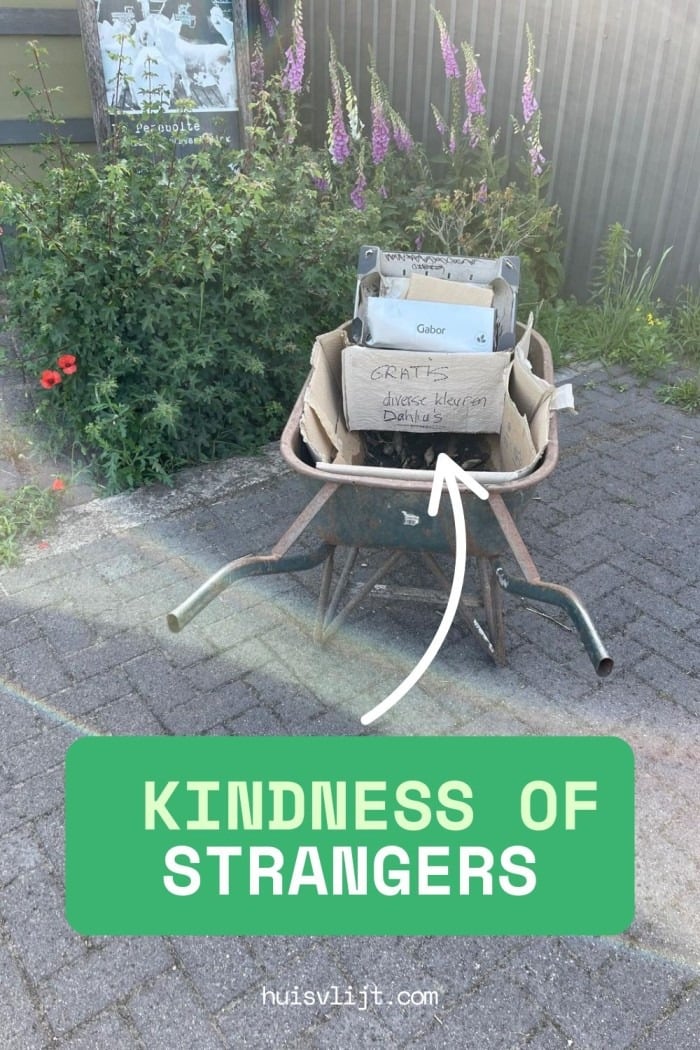 Kindness of strangers: vriendelijkheid en gratis Dahlia bollen in een kruiwagen!