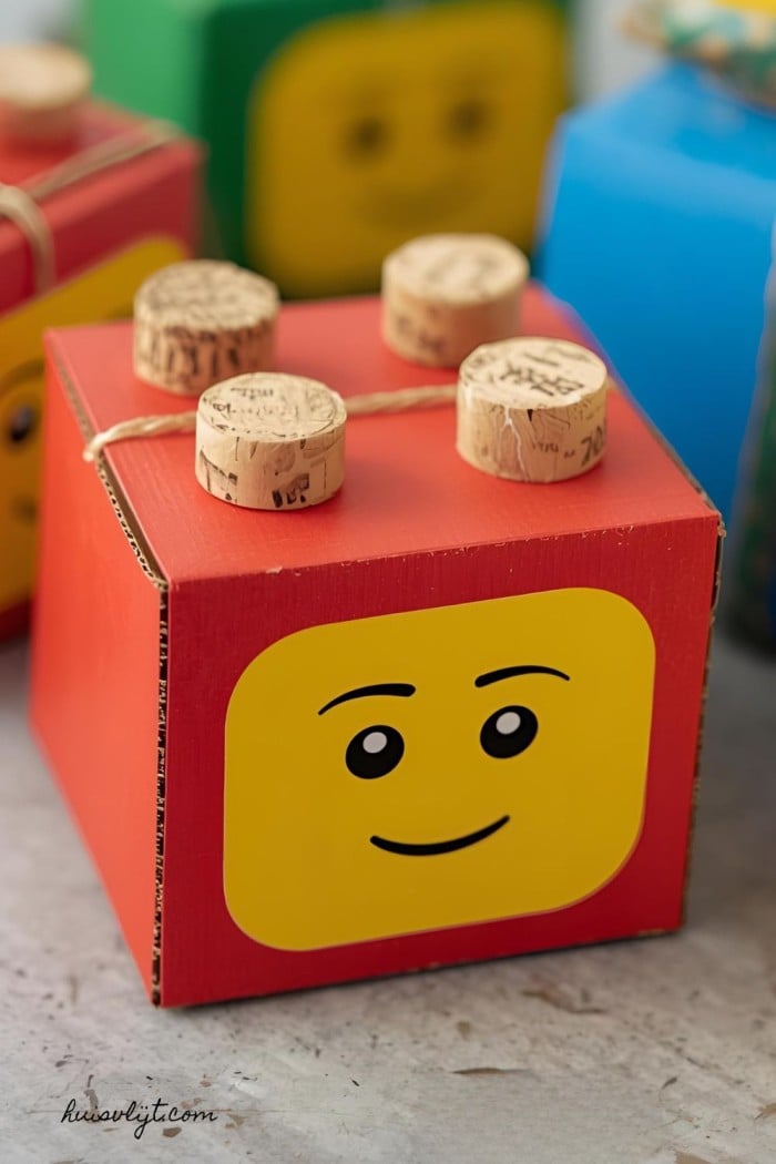 💡 Tip: Stapel meerdere doosjes voor een LEGO-toren effect. Houd het simpel: doosje + noppen + kleur = LEGO-look.