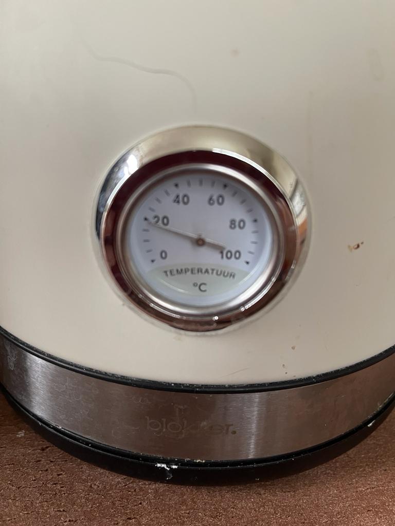 Ik heb er ook één die er zo leuk uitziet, vind ‘m heel erg leuk. Zo’n temperatuurmetertje heb ik niet en heb ik ook niet nodig. Ik ben net als jij: ik wacht tot de waterkoker zichzelf uitschakelt.