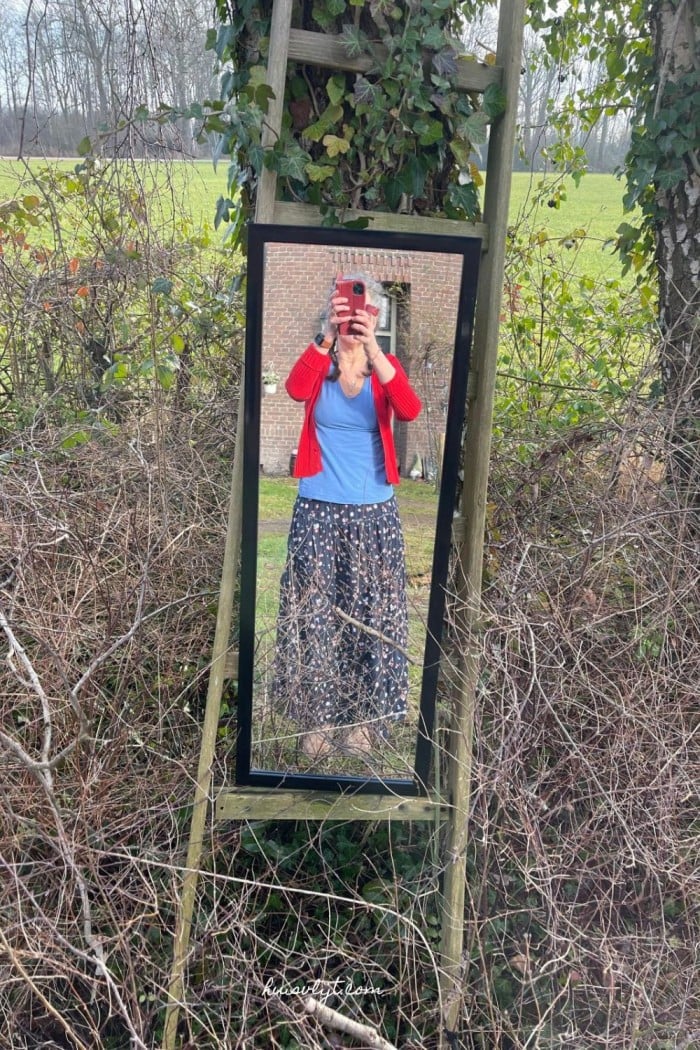 Jij ziet er altijd gezellig uit, in ieder geval verzorgd. Dat je de kleding tweedehands of zo goedkoop mogelijk koopt, lees ik graag. Mooi hoe je de kleding combineert. Volgens mij staat (bijna) alles jou. Ik draag een spijkerbroek en een fleecetrui (met daaronder een thermoshirt.)