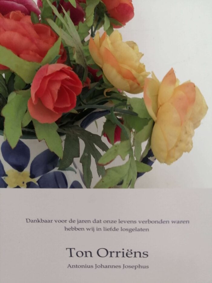 ‘Dankbaar voor de jaren dat onze levens verbonden waren hebben wij in liefde losgelaten Ton Orriëns’.