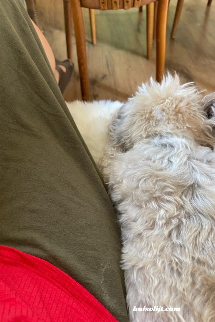 Wij kochten ooit een “echte vacht”. De hond vond het zalig,dus ik haalde hem weg. Nu ligt die weer op de bank.