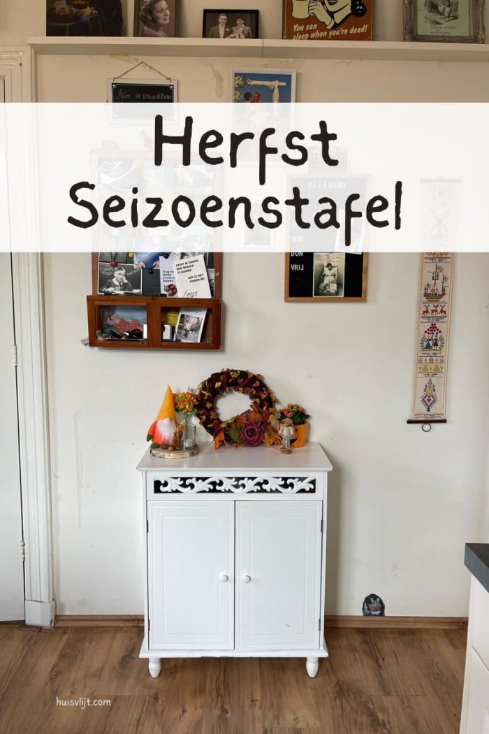 Nu het officieel herfst is heb ik alle zomerspullen van mijn vuilnisbakkastje verzameld en in een grote tas gedaan. Vervolgens heb ik mijn herfstspullen verzameld en mooi uitgestald.