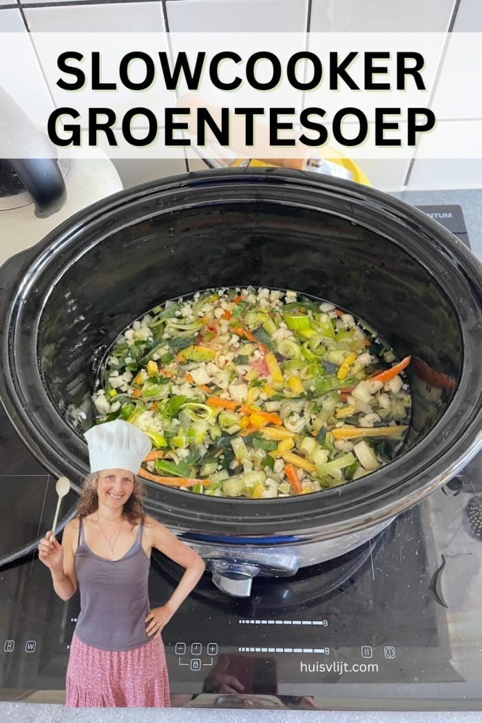Toen ons inductiefornuis kapot ging, besloot ik om groentesoep in de slowcooker te maken. Normaal gesproken kook ik groentesoep op het inductiefornuis, dus dit was een experiment voor mij.