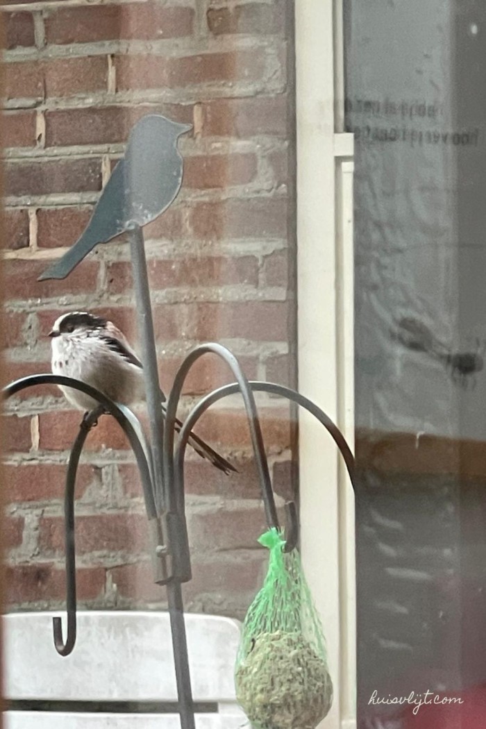 Omdat ik mijn foto dwars door het keukenraam moest maken, hieronder een betere foto van een staartmees die ik online vond: