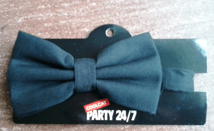 HM had wel degelijk gewone zwarte strikjes hoor – op het witte feestoverhemd. Prima ding, zal jaren meegaan want is verstelbaar. Zelfs papa kon ‘m om :-)