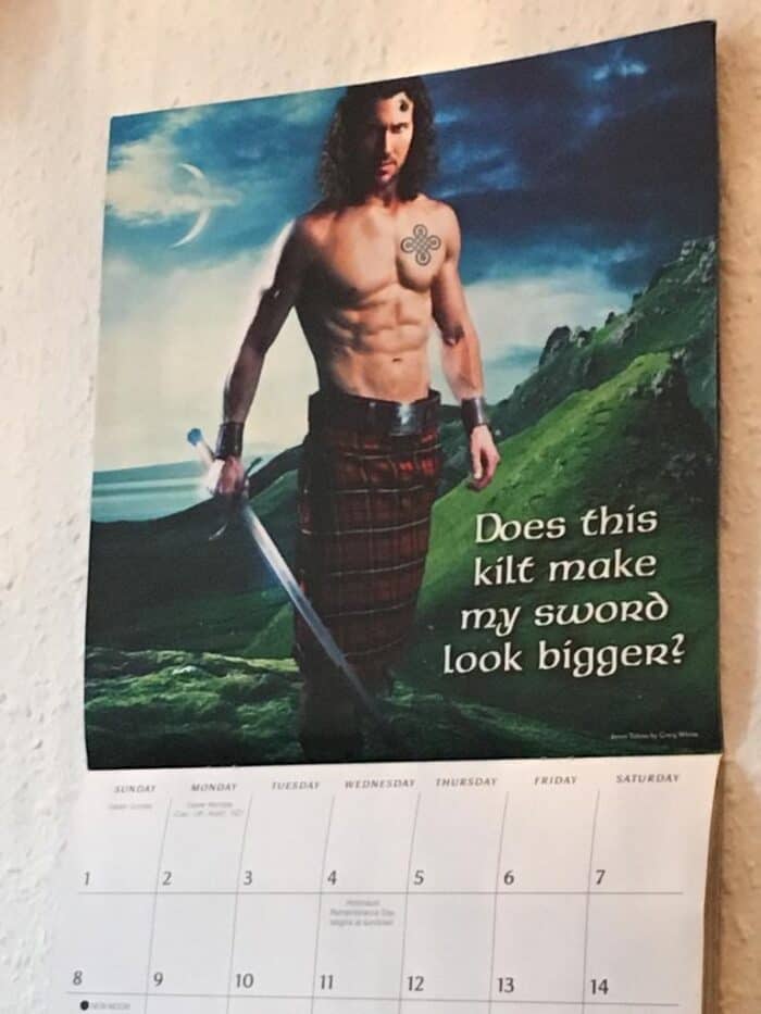 Toch leuk om te zien in Engeland kilt dragen. Toch leuke kalender. Het is ook apart die gene kilt draagt. Maakt toch niet uit. Fijne dag.