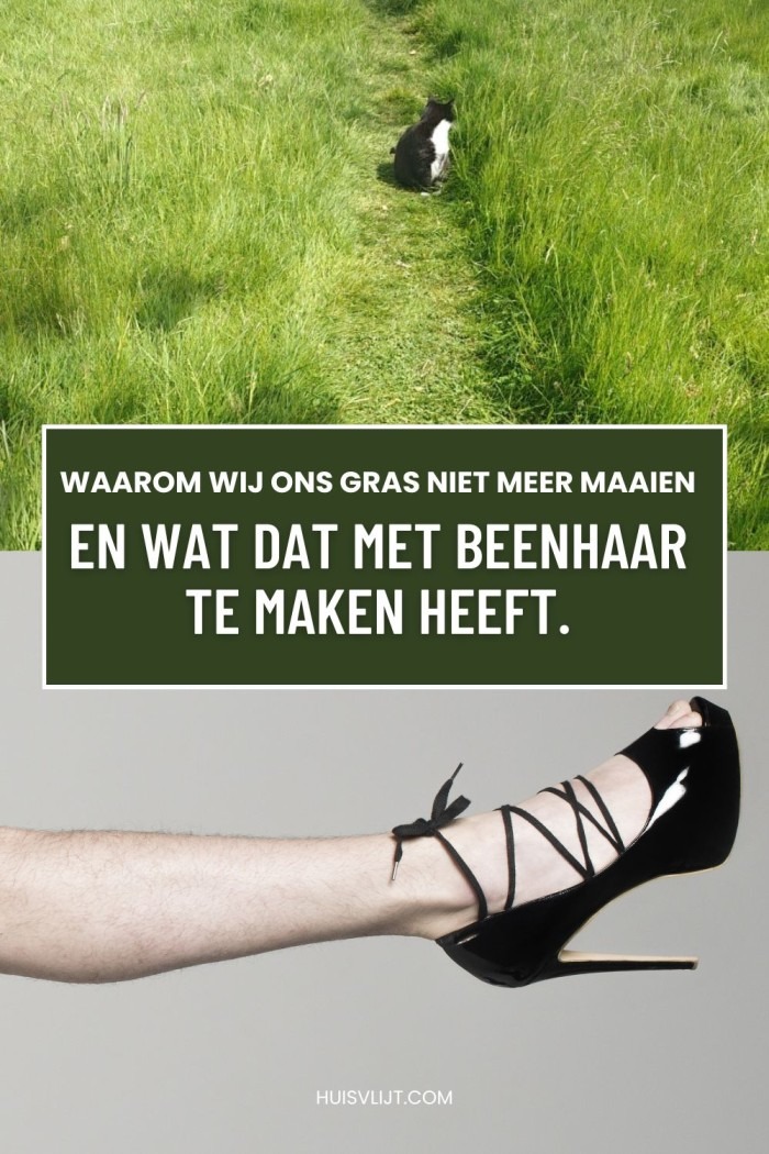 Ik vergelijk het graag met het idee dat het lelijk is als vrouwen beenhaar hebben. Dat is een culturele norm die we vrijwel allemaal keurig hebben ingeslikt. Ook ik, die toch behoorlijk onderhoudsarm ben, onthaar mijn onderbenen. Het is mijn theorie dat hetzelfde aan de hand is met onze tuinen: we hebben massaal de norm meegekregen dat een nette tuin een gemaaide tuin is. En dat zorgt zo nu en dan voor een gevoel van ongemak bij mij. Ik heb zelfs al gedacht: ‘Moeten we anders niet een bordje in onze tuin zetten met de tekst: