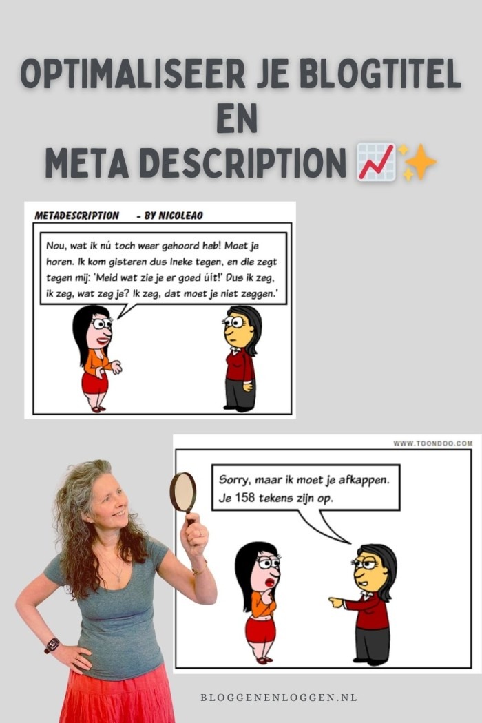 Leer hoe je de perfecte titel en metadescription schrijft ✨ die niet te lang of te kort zijn en je blogposts helpen opvallen in zoekresultaten 🔍! Tips voor WordPress en Blogspot vind je op mijn blog over bloggen: Bloggen en loggen!