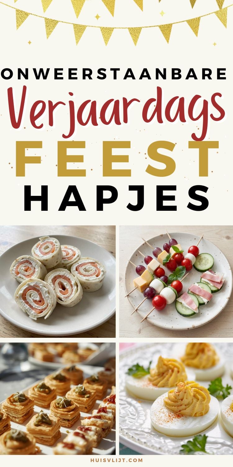 Voor wie liever iets hartigs zonder vlees serveert, zijn kleine bladerdeeghapjes handig. Ze kunnen vooraf worden gebakken en op kamertemperatuur worden geserveerd. Denk aan rolletjes met pesto en kaas of kleine vierkantjes met tapenade. Ze zijn stevig genoeg om vast te houden en passen goed tussen andere verjaardagshapjes.