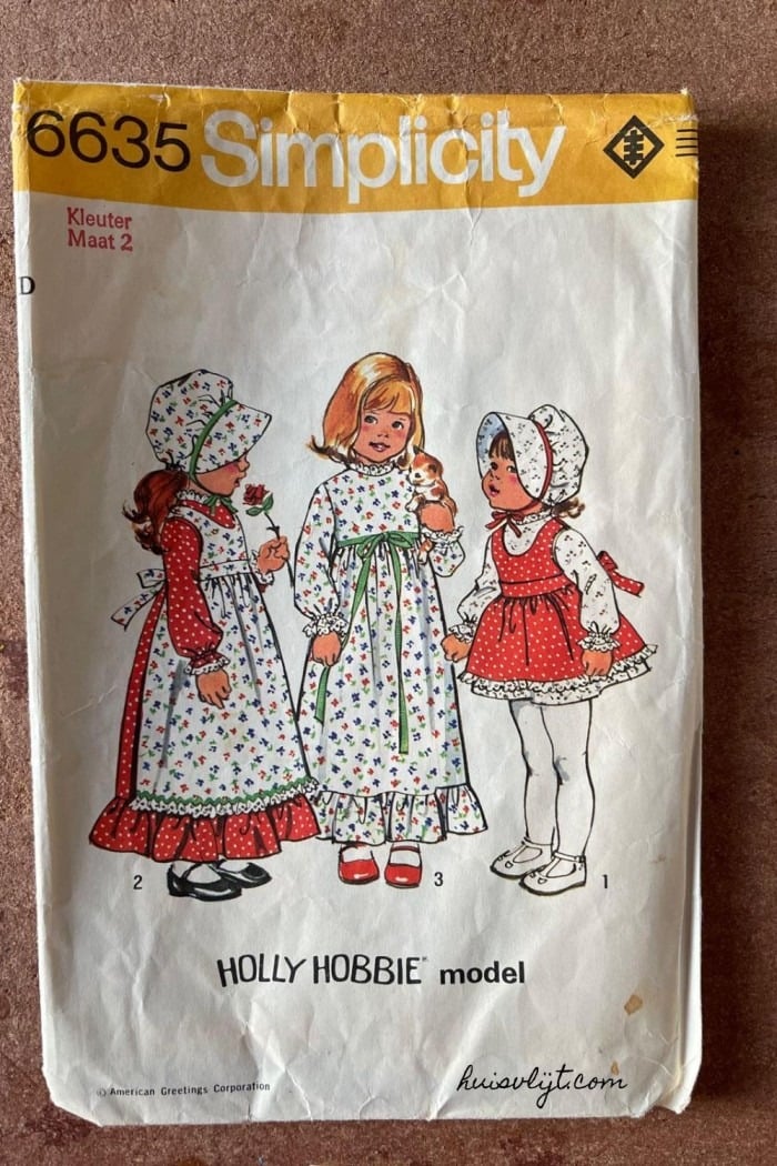 Bij een Dorcas kringloopwinkel vond mijn jongste dochter Teuntje dit prachtige Holly Hobbie patroon! Het levert Holly Hobbie jurkjes op voor een peuter.