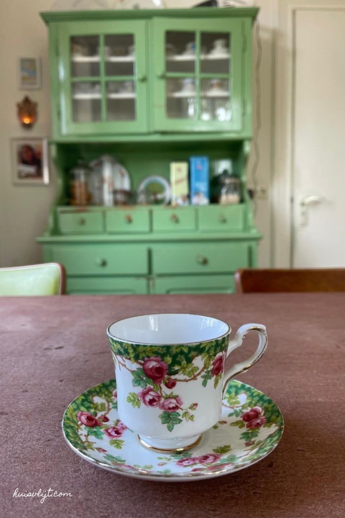 Elke ochtend drink ik mijn drie kopjes koffie uit zo’n mooi servies. Ik zweer je dat koffie extra lekker is in zo’n mooi kopje en schoteltje.