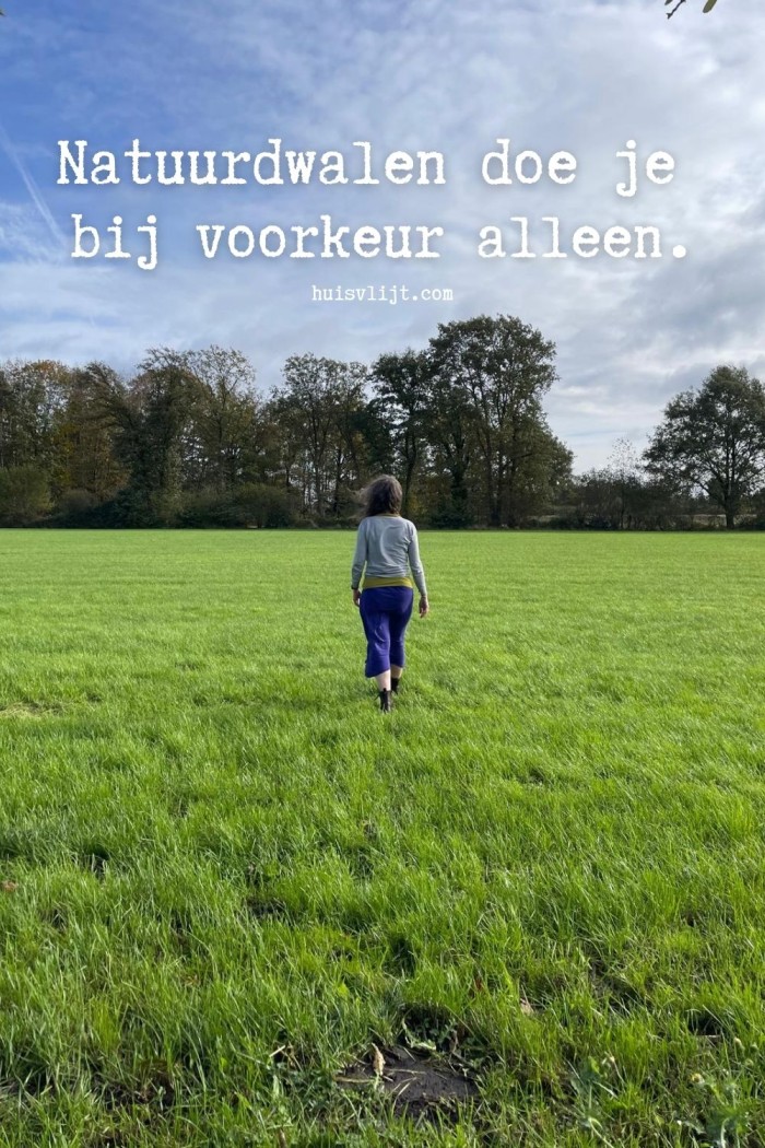 Het is het beste om alleen te gaan wandelen en natuurdwalen adviseert Katja. Want als je met iemand samen gaan wandelen, dan ontstaan er gesprekken en een andere dynamiek. Dan kom je alsnog niet tot jezelf. Ik kan je niet zeggen hoe erg ik het hiermee eens ben. Het is één van de redenen dat ik het zo moeilijk vind dat sinds corona ik nooit meer alleen thuis ben. Het is precies wat Katja zegt: ‘Als je met meer mensen bent, verandert de dynamiek.’ Maar dit terzijde.