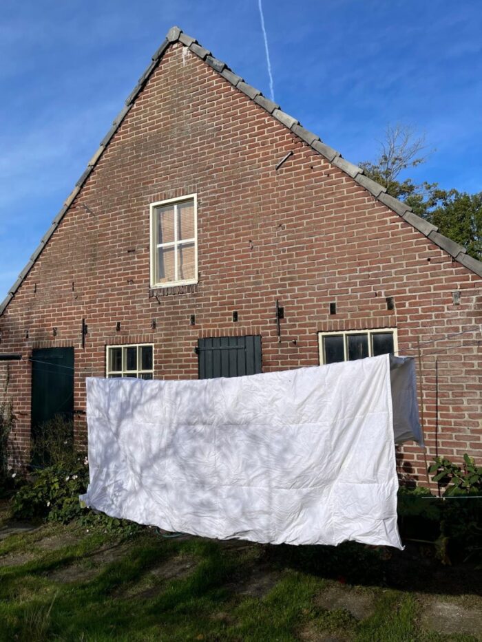 Ik heb het winterdekbed op 60 graden gewassen om het echt hygiënisch schoon te krijgen en alle huismijt naar de andere wereld te helpen. Daarna heb ik het lekker over de waslijn buiten gehangen zodat het fris en fruitig kan opdrogen.